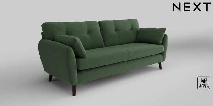 6.12.1 Buy Wilson Buttoned Back 3 Seater Sofa Fine Chenille Easy Clean Mid Khaki Green Retro Tapered - Dark Brown from the Next UK online shop Click here to use our accessible website