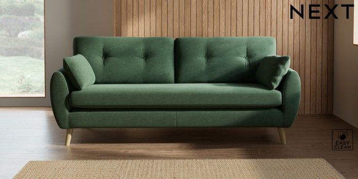 7.2.10 Buy Wilson Buttoned Back 3 Seater Sofa Fine Chenille Easy Clean Mid Khaki Green Retro Tapered - Light from the Next UK online shop Click here to use our accessible website