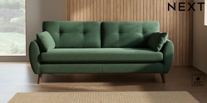 7.2.10 Buy Wilson Buttoned Back 3 Seater Sofa Fine Chenille Easy Clean Mid Khaki Green Retro Tapered - Mid from the Next UK online shop Click here to use our accessible website