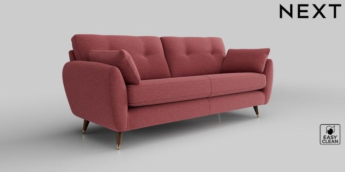 6.12.13 Buy Wilson Buttoned Back 3 Seater Sofa Fine Chenille Easy Clean Mid Pink Low Retro Tapered Metal Cap - Mid from the Next UK online shop Click here to use our accessible website