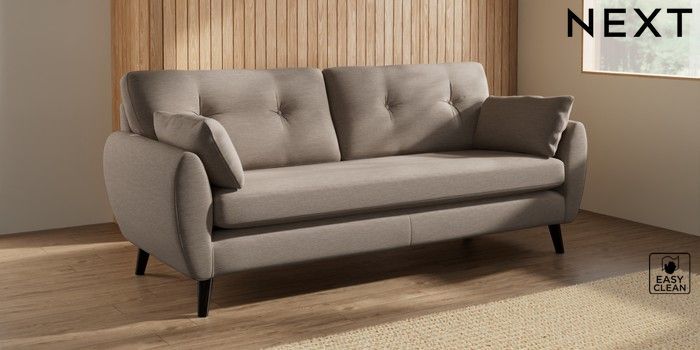7.3.1 Buy Wilson Buttoned Back 3 Seater Sofa Fine Chenille Easy Clean Mid Taupe Brown Retro Tapered - Dark from the Next UK online shop Click here to use our accessible website