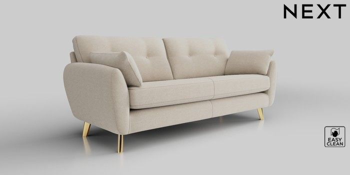 6.12.13 Buy Wilson Buttoned Back 3 Seater Sofa Fine Chenille Easy Clean Oyster Metal Tapered - Gold from the Next UK online shop Click here to use our accessible website