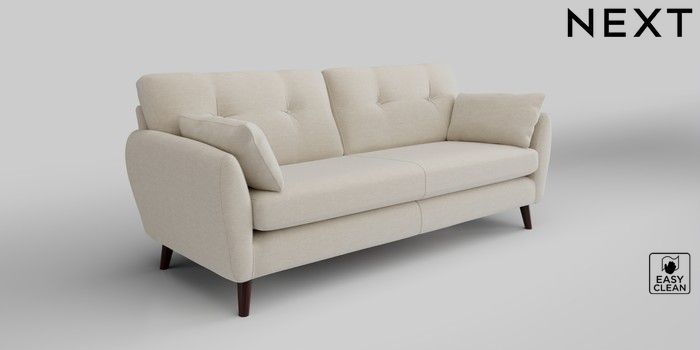 6.12.1 Buy Wilson Buttoned Back 3 Seater Sofa Fine Chenille Easy Clean Oyster Retro Tapered - Dark Brown from the Next UK online shop Click here to use our accessible website