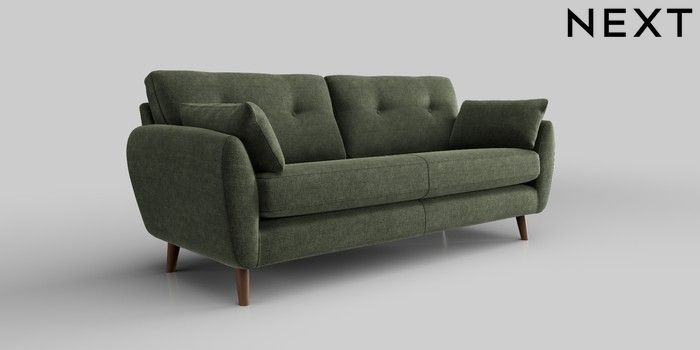 6.12.1 Buy Wilson Buttoned Back 3 Seater Sofa Luxe Chenille Mid Green Retro Tapered - Mid from the Next UK online shop Click here to use our accessible website