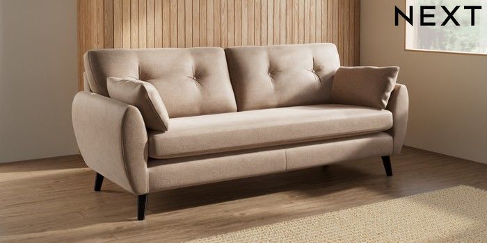 7.3.1 Buy Wilson Buttoned Back 3 Seater Sofa Luxe Chenille Mid Natural Retro Tapered - Dark from the Next UK online shop