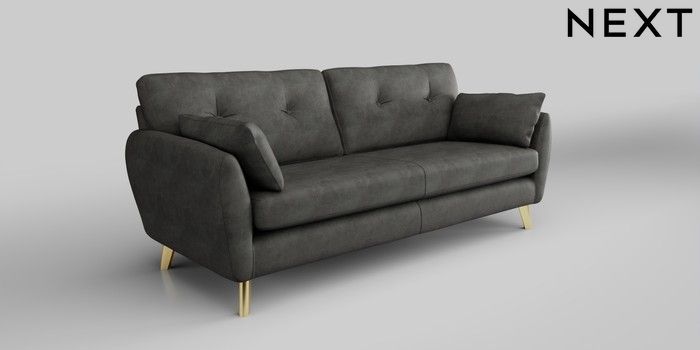 6.12.1 Buy Wilson Buttoned Back 3 Seater Sofa Monza Faux Leather Easy Clean Dark Grey Metal Tapered - Gold from the Next UK online shop Click here to use our accessible website