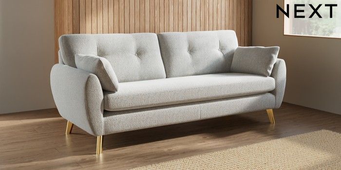7.3.1 Buy Wilson Buttoned Back 3 Seater Sofa Multi Weave Light Blue Metal Tapered - Gold from the Next UK online shop