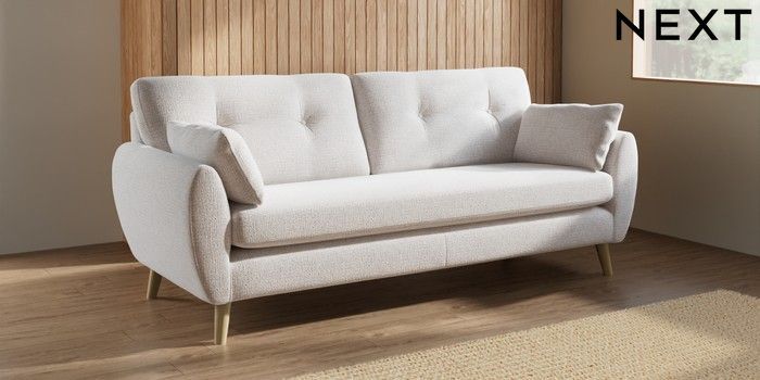 7.3.1 Buy Wilson Buttoned Back 3 Seater Sofa Multi Weave Oyster Retro Tapered - Light from the Next UK online shop