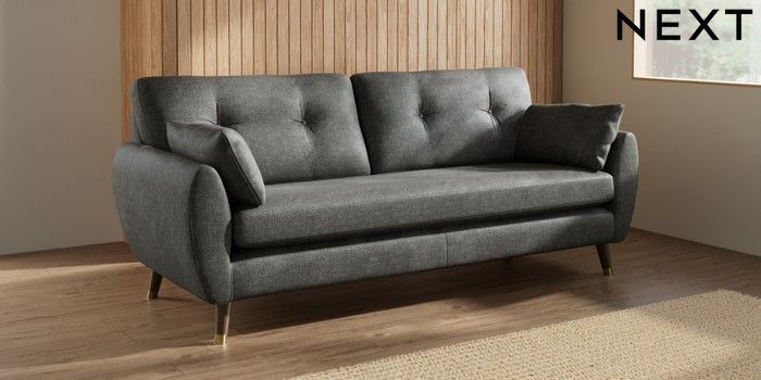 7.3.1 Buy Wilson Buttoned Back 3 Seater Sofa Plush Chenille Dark Grey Low Retro Tapered Metal Cap - Mid from the Next UK online shop Click here to use our accessible website