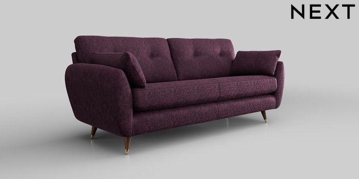 6.12.1 Buy Wilson Buttoned Back 3 Seater Sofa Plush Chenille Dark Plum Purple Low Retro Tapered Metal Cap - Mid from the Next UK online shop Click here to use our accessible website