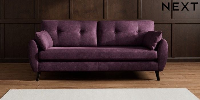 7.3.1 Buy Wilson Buttoned Back 3 Seater Sofa Plush Chenille Dark Plum Purple Retro Tapered - Dark from the Next UK online shop Click here to use our accessible website