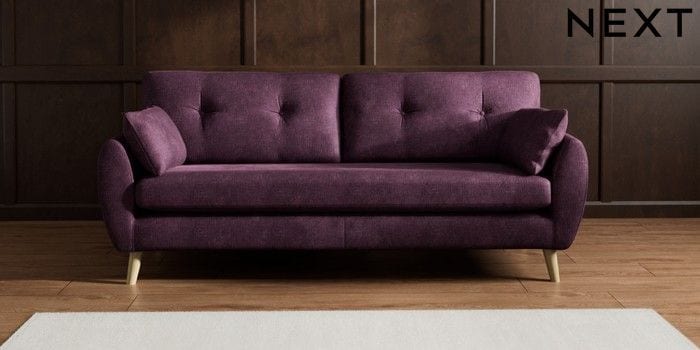 7.3.1 Buy Wilson Buttoned Back 3 Seater Sofa Plush Chenille Dark Plum Purple Retro Tapered - Light from the Next UK online shop Click here to use our accessible website