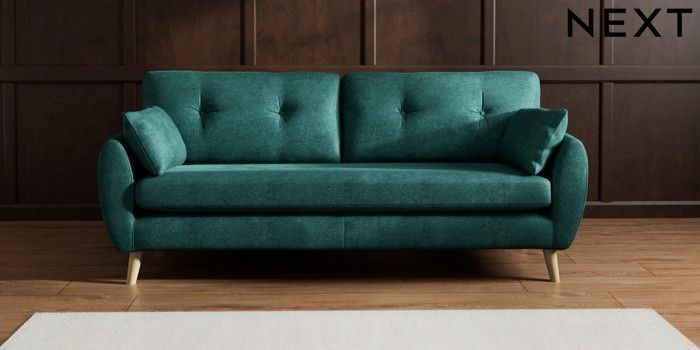 7.3.1 Buy Wilson Buttoned Back 3 Seater Sofa Plush Chenille Dark Teal Green Retro Tapered - Light from the Next UK online shop Click here to use our accessible website