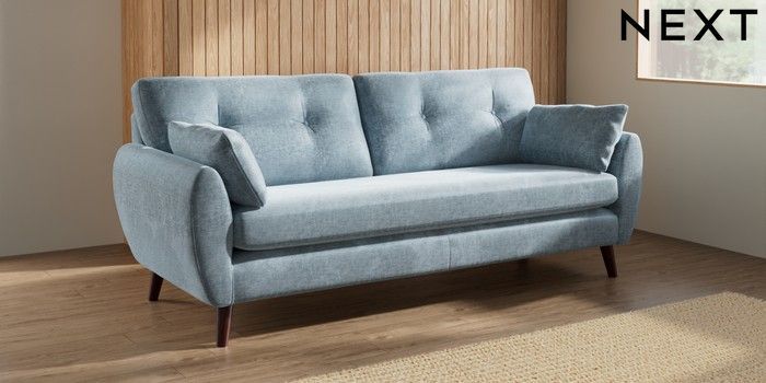 7.3.1 Buy Wilson Buttoned Back 3 Seater Sofa Plush Chenille Light Blue Retro Tapered - Dark Brown from the Next UK online shop