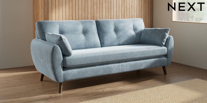 7.3.1 Buy Wilson Buttoned Back 3 Seater Sofa Plush Chenille Light Blue Retro Tapered - Mid from the Next UK online shop