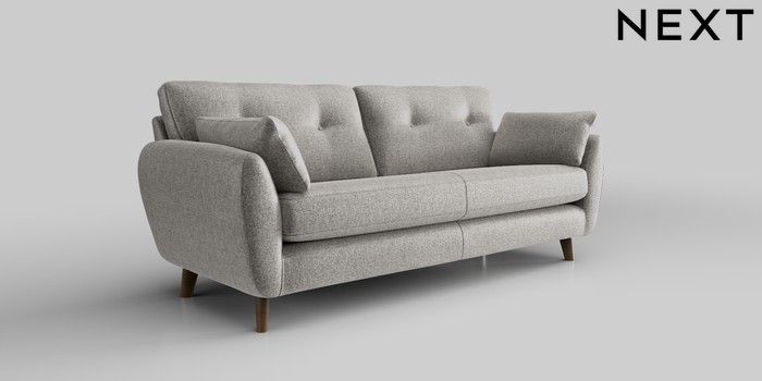 6.12.1 Buy Wilson Buttoned Back 3 Seater Sofa Plush Chenille Light Grey Retro Tapered - Mid from the Next UK online shop Click here to use our accessible website