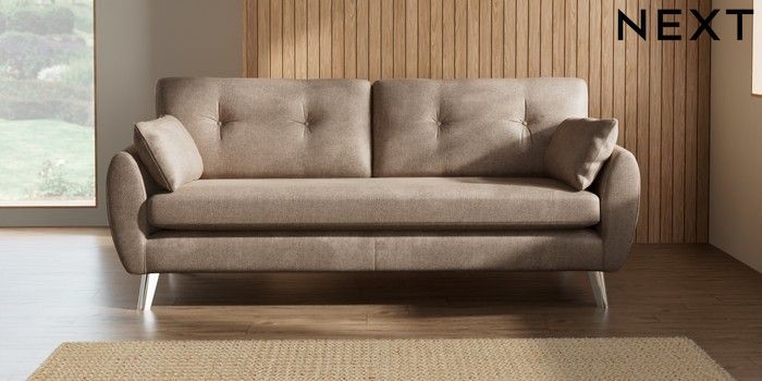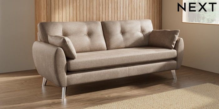 7.3.1 Buy Wilson Buttoned Back 3 Seater Sofa Plush Chenille Mid Natural Metal Tapered - Chrome from the Next UK online shop