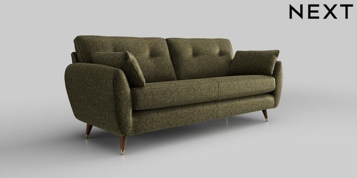 6.12.1 Buy Wilson Buttoned Back 3 Seater Sofa Plush Chenille Moss Green Low Retro Tapered Metal Cap - Mid from the Next UK online shop Click here to use our accessible website