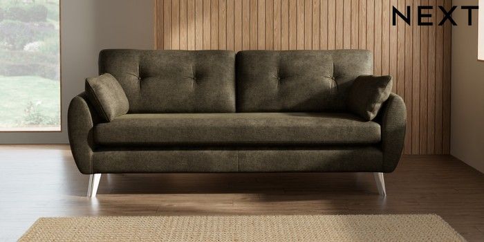 7.3.1 Buy Wilson Buttoned Back 3 Seater Sofa Plush Chenille Moss Green Metal Tapered - Chrome from the Next UK online shop Click here to use our accessible website