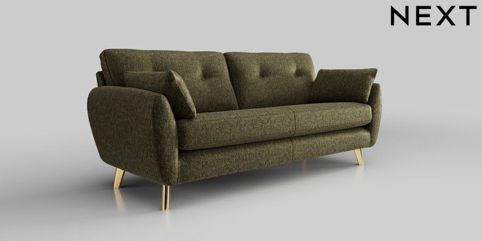 6.12.13 Buy Wilson Buttoned Back 3 Seater Sofa Plush Chenille Moss Green Metal Tapered - Gold from the Next UK online shop Click here to use our accessible website