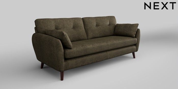 6.12.1 Buy Wilson Buttoned Back 3 Seater Sofa Plush Chenille Moss Green Retro Tapered - Dark Brown from the Next UK online shop Click here to use our accessible website