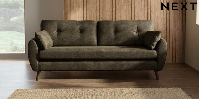 7.2.10 Buy Wilson Buttoned Back 3 Seater Sofa Plush Chenille Moss Green Retro Tapered - Mid from the Next UK online shop Click here to use our accessible website