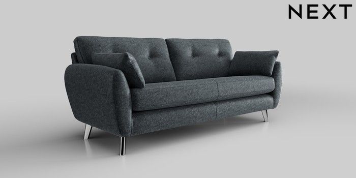 6.12.13 Buy Wilson Buttoned Back 3 Seater Sofa Plush Chenille Slate Blue Metal Tapered - Chrome from the Next UK online shop Click here to use our accessible website