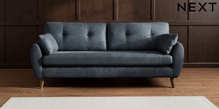 7.2.10 Buy Wilson Buttoned Back 3 Seater Sofa Plush Chenille Slate Blue Retro Tapered - Mid from the Next UK online shop Click here to use our accessible website