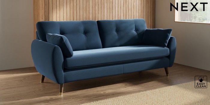 7.3.1 Buy Wilson Buttoned Back 3 Seater Sofa Plush Velvet Easy Clean Airforce Blue Low Retro Tapered Metal Cap - Mid from the Next UK online shop Click here to use our accessible website