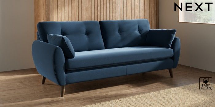 7.3.1 Buy Wilson Buttoned Back 3 Seater Sofa Plush Velvet Easy Clean Airforce Blue Retro Tapered - Mid from the Next UK online shop Click here to use our accessible website