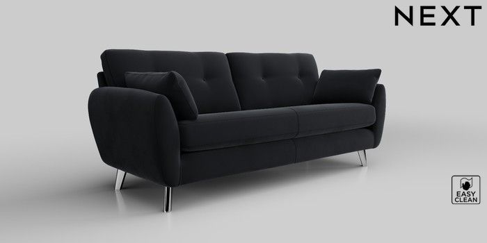 6.12.13 Buy Wilson Buttoned Back 3 Seater Sofa Plush Velvet Easy Clean Charcoal Grey Metal Tapered - Chrome from the Next UK online shop Click here to use our accessible website