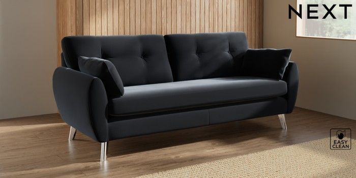 7.3.1 Buy Wilson Buttoned Back 3 Seater Sofa Plush Velvet Easy Clean Charcoal Grey Metal Tapered - Chrome from the Next UK online shop Click here to use our accessible website
