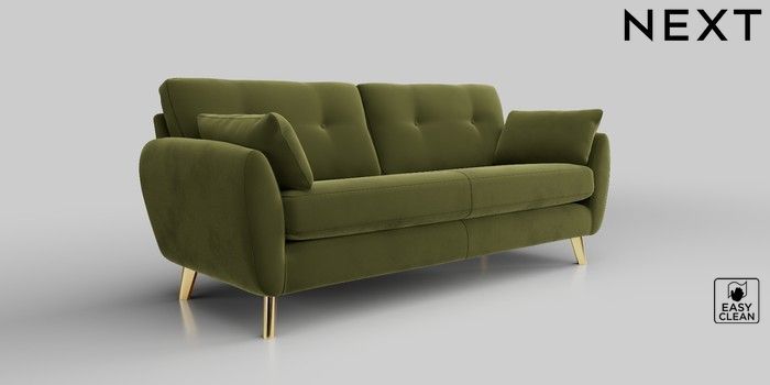 6.12.1 Buy Wilson Buttoned Back 3 Seater Sofa Plush Velvet Easy Clean Mid Olive Green Metal Tapered - Gold from the Next UK online shop Click here to use our accessible website