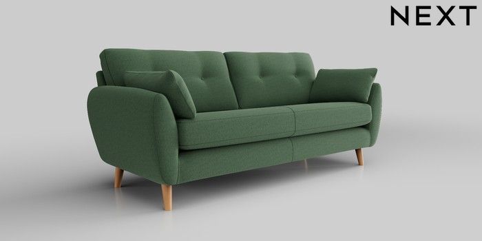 6.12.1 Buy Wilson Buttoned Back 3 Seater Sofa Relaxed Linen Look Dark Green Retro Tapered - Light from the Next UK online shop Click here to use our accessible website