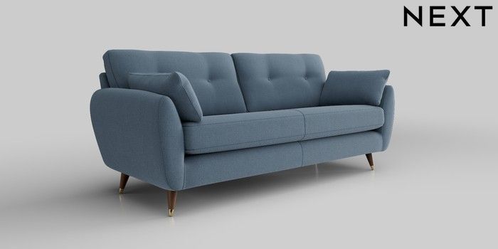 6.12.1 Buy Wilson Buttoned Back 3 Seater Sofa Relaxed Linen Look Mid Blue Low Retro Tapered Metal Cap - Mid from the Next UK online shop Click here to use our accessible website