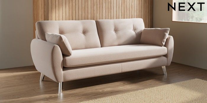 7.3.1 Buy Wilson Buttoned Back 3 Seater Sofa Relaxed Linen Look Mid Natural Metal Tapered - Chrome from the Next UK online shop Click here to use our accessible website