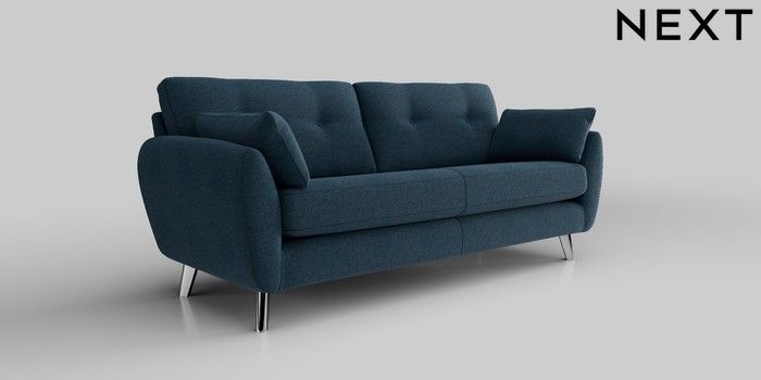 6.12.1 Buy Wilson Buttoned Back 3 Seater Sofa Ripple Chenille Dark Blue Metal Tapered - Chrome from the Next UK online shop Click here to use our accessible website