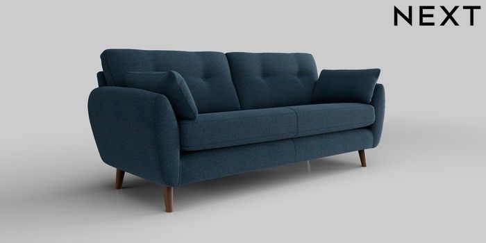 6.12.1 Buy Wilson Buttoned Back 3 Seater Sofa Ripple Chenille Dark Blue Retro Tapered - Mid from the Next UK online shop Click here to use our accessible website