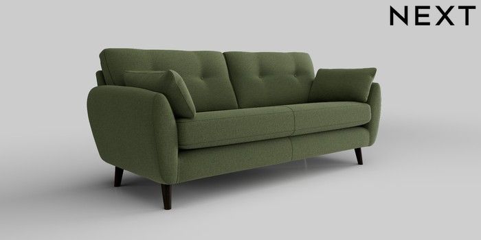 6.12.1 Buy Wilson Buttoned Back 3 Seater Sofa Ripple Chenille Mid Moss Green Retro Tapered - Dark from the Next UK online shop Click here to use our accessible website