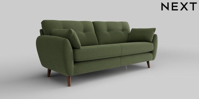 6.12.1 Buy Wilson Buttoned Back 3 Seater Sofa Ripple Chenille Mid Moss Green Retro Tapered - Mid from the Next UK online shop Click here to use our accessible website