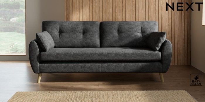 7.2.10 Buy Wilson Buttoned Back 3 Seater Sofa Boucle Weave Easy Clean Charcoal Grey Retro Tapered - Light from the Next UK online shop Click here to use our accessible website