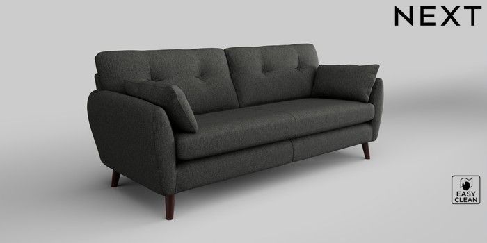 6.12.1 Buy Wilson Buttoned Back 3 Seater Sofa Tweedy Blend Easy Clean Charcoal Grey Retro Tapered - Dark Brown from the Next UK online shop Click here to use our accessible website