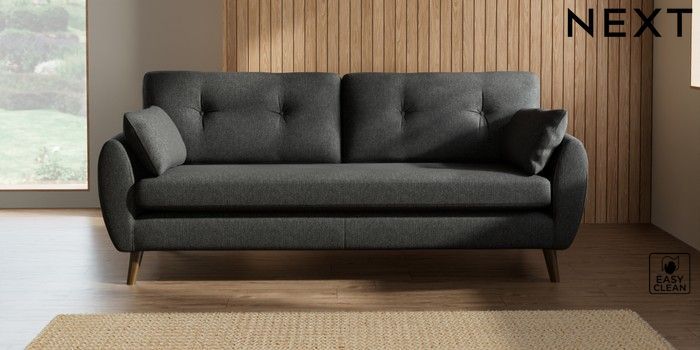 7.2.10 Buy Wilson Buttoned Back 3 Seater Sofa Tweedy Blend Easy Clean Charcoal Grey Retro Tapered - Mid from the Next UK online shop Click here to use our accessible website