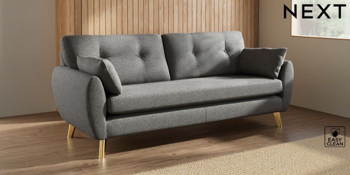 7.3.1 Buy Wilson Buttoned Back 3 Seater Sofa Tweedy Blend Easy Clean Dark Grey Metal Tapered - Gold from the Next UK online shop Click here to use our accessible website