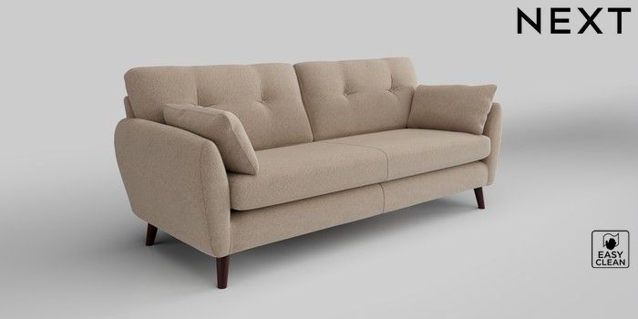 6.12.1 Buy Wilson Buttoned Back 3 Seater Sofa Tweedy Blend Easy Clean Light Dove Natural Retro Tapered - Dark Brown from the Next UK online shop Click here to use our accessible website