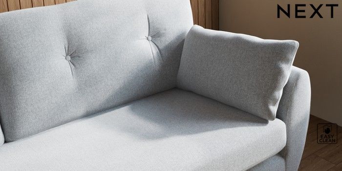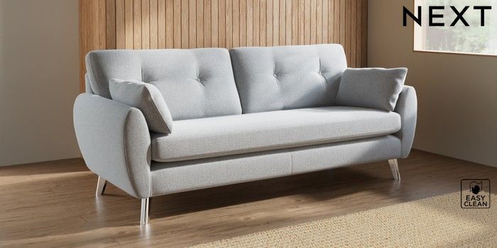 7.3.1 Buy Wilson Buttoned Back 3 Seater Sofa Tweedy Blend Easy Clean Light Silver Grey Metal Tapered - Chrome from the Next UK online shop Click here to use our accessible website