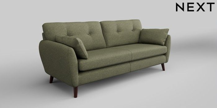 6.12.1 Buy Wilson Buttoned Back 3 Seater Sofa Tweedy Chenille Mid Moss Green Retro Tapered - Dark Brown from the Next UK online shop Click here to use our accessible website