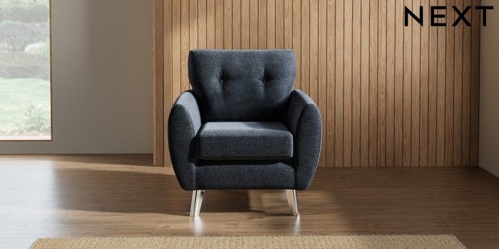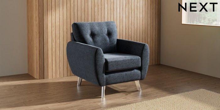 7.3.1 Buy Wilson Buttoned Back Armchair Boucle Chenille Dark Slate Blue Metal Tapered - Chrome from the Next UK online shop Click here to use our accessible website