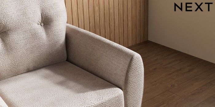 7.3.1 Buy Wilson Buttoned Back Armchair Boucle Chenille Light Natural Retro Tapered - Mid from the Next UK online shop