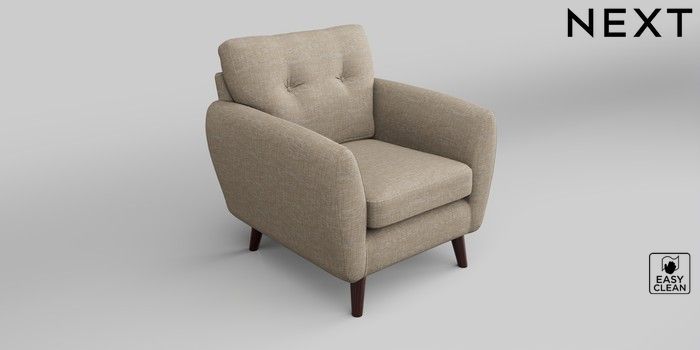 6.12.1 Buy Wilson Buttoned Back Armchair Boucle Weave Easy Clean Dark Natural Retro Tapered - Dark Brown from the Next UK online shop Click here to use our accessible website